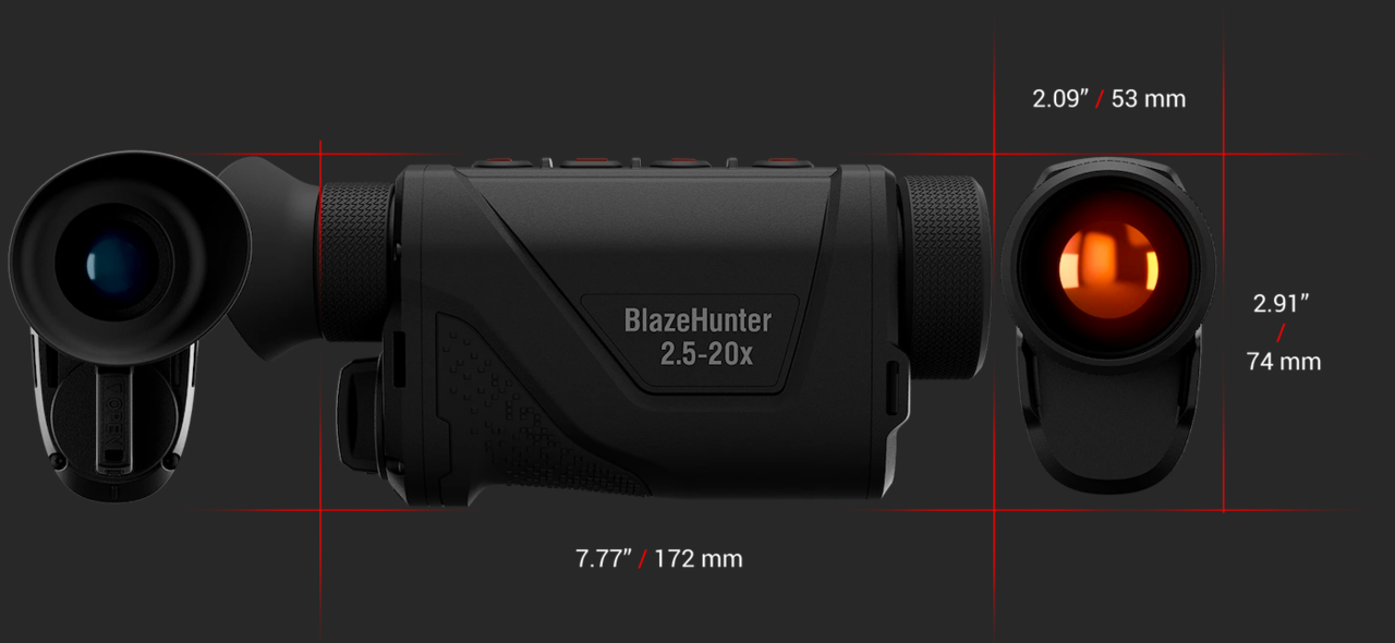 Тепловізійний монокуляр BlazeHunter має вбудований лазерний далекомір для швидкого і точного вимірювання відстані. Незалежно від того, чи ви стежите за дикими тваринами, чи пересуваєтеся по пересіченій місцевості, LRF спрощує вимірювання відстані, надаючи необхідні дані без додаткових пристроїв.
